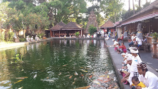 Ostatnim przystankiem tego dnia była świątynia Tampak siring. Kolejne miejsce które pewnie wielu widziało na zdjęciach. Bardzo duża świątynia gdzie akurat tego dnia odbywało się jakieś święto i było pełno ludzi, rodzin z dziećmi ubranych w tradycyjne stroje i przynoszących dary do świątyni.