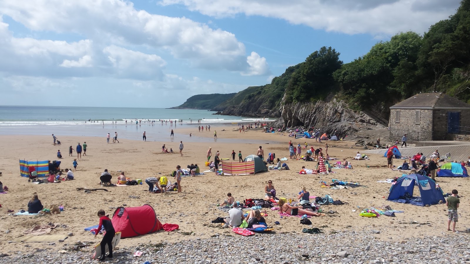 Po skończeniu campu miałam okazję na jeden dzień pojechać do Walii nad południowe wybrzeże na półwysep Mumbles. Jak dla mnie było zimno i na pewno nie była to pogoda na plażowanie. Ale Walijczycy chyba mają inne zdanie bo plaża była dość pełna ludzi i pełna porozbieranych dzieci taplających się w zimnej wodzie.